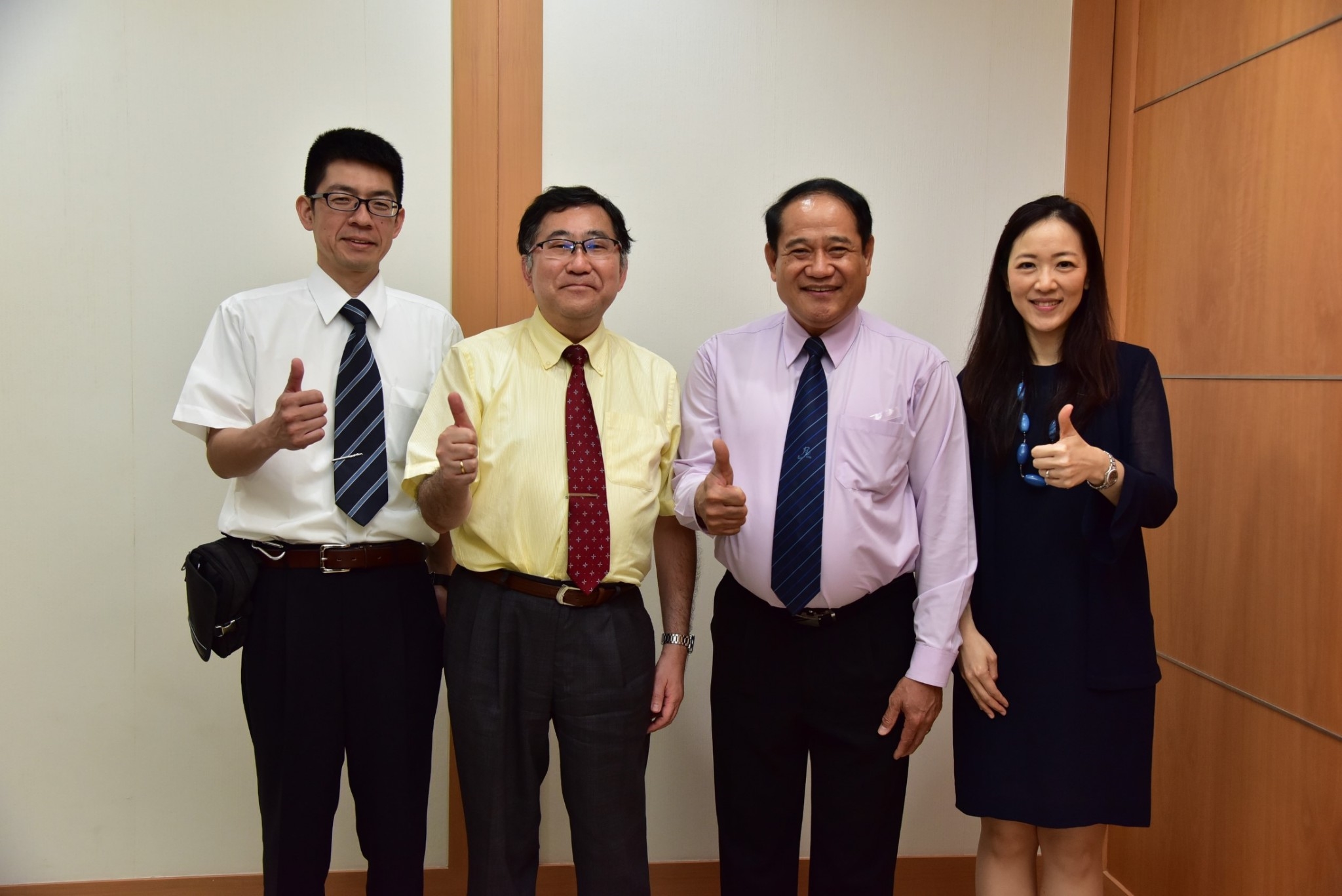 ผศ.ดร.สมหมาย ผิวสอาด รองอธิการบดี พร้อมด้วย รศ.ดร.ณฐา คุปตัษเฐียร ผู้ช่วยอธิการบดีด้านวิเทศสัมพันธ์ มหาวิทยาลัยเทคโนโลยีราชมงคลธัญบุรี ให้การต้อนรับ ผู้บริหารจาก National Institute of Technology, Nagono College ประเทศญี่ปุ่น เพื่อหารือการทำความร่วมมือทางวิชาการ และหารือเกี่ยวกับการเข้าร่วมเป็นสมาชิกของ CDIO เมื่อวันจันทร์ที่ 7 พฤษภาคม 2561 ณ ห้องประชุมบัวหลวง 1 ชั้น 5 อาคารเฉลิมพระเกียรติ 48 พระชันษา สมเด็จพระเทพรัตนราชสุดาฯ สยามบรมราชกุมารี มหาวิทยาลัยเทคโนโลยีราชมงคลธัญบุรี