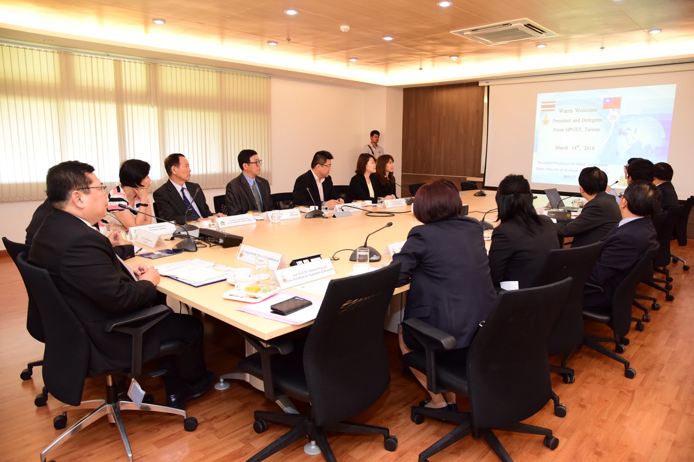On the 14th of March 2018, Prof.Dr. Chang-Hsien Tai, President of National Pingtung University of Science and Technology, was warmly welcomed by Assoc. Prof. Dr. Prasert Pinpathomrat, President of RMUTT. The aimed of the said visit is to discuss possible collaboration and linkages between RMUTT and National Pingtung University of Science and Technology, the Republic of China (ROC).