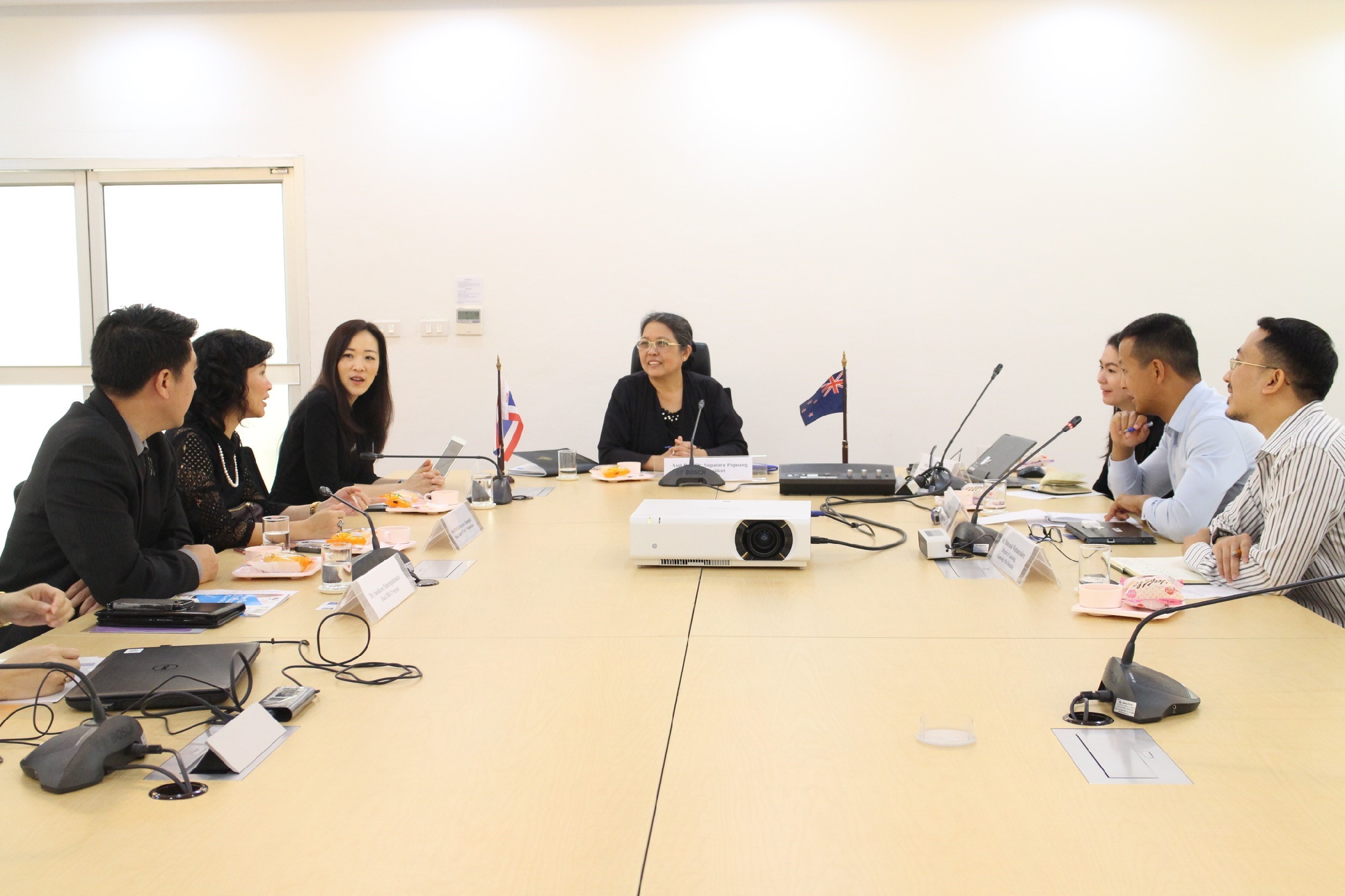 ผศ.ดร.สุภัทรา โพธิ์พ่วง รองอธิการบดี พร้อมด้วย รศ.ดร.ณฐา คุปตัษเฐียร ผู้ช่วยอธิการบดีและผู้อำนวยการกองยุทธศาสตร์ต่างประเทศ มหาวิทยาลัยเทคโนโลยีราชมงคลธัญบุรี ให้การต้อนรับ Mr.Yuan Pei, International Relationship Developer จาก Otago Polytechnic ประเทศนิวซีแลนด์ เพื่อหารือความร่วมมือและสร้างเครือข่ายระหว่างมหาวิทยาลัยเทคโนโลยีราชมงคลธัญบุรีและ Otago Polytechnic เมื่อวันอังคารที่ 3 กรกฎาคม 2560 ณ ห้องประชุมธัญกาฬ ชั้น 5 อาคารเฉลิมพระเกียรติ 48 พระชันษา สมเด็จพระเทพรัตนราชสุดาฯ สยามบรมราชกุมารี มหาวิทยาลัยเทคโนโลยีราชมงคลธัญบุรี