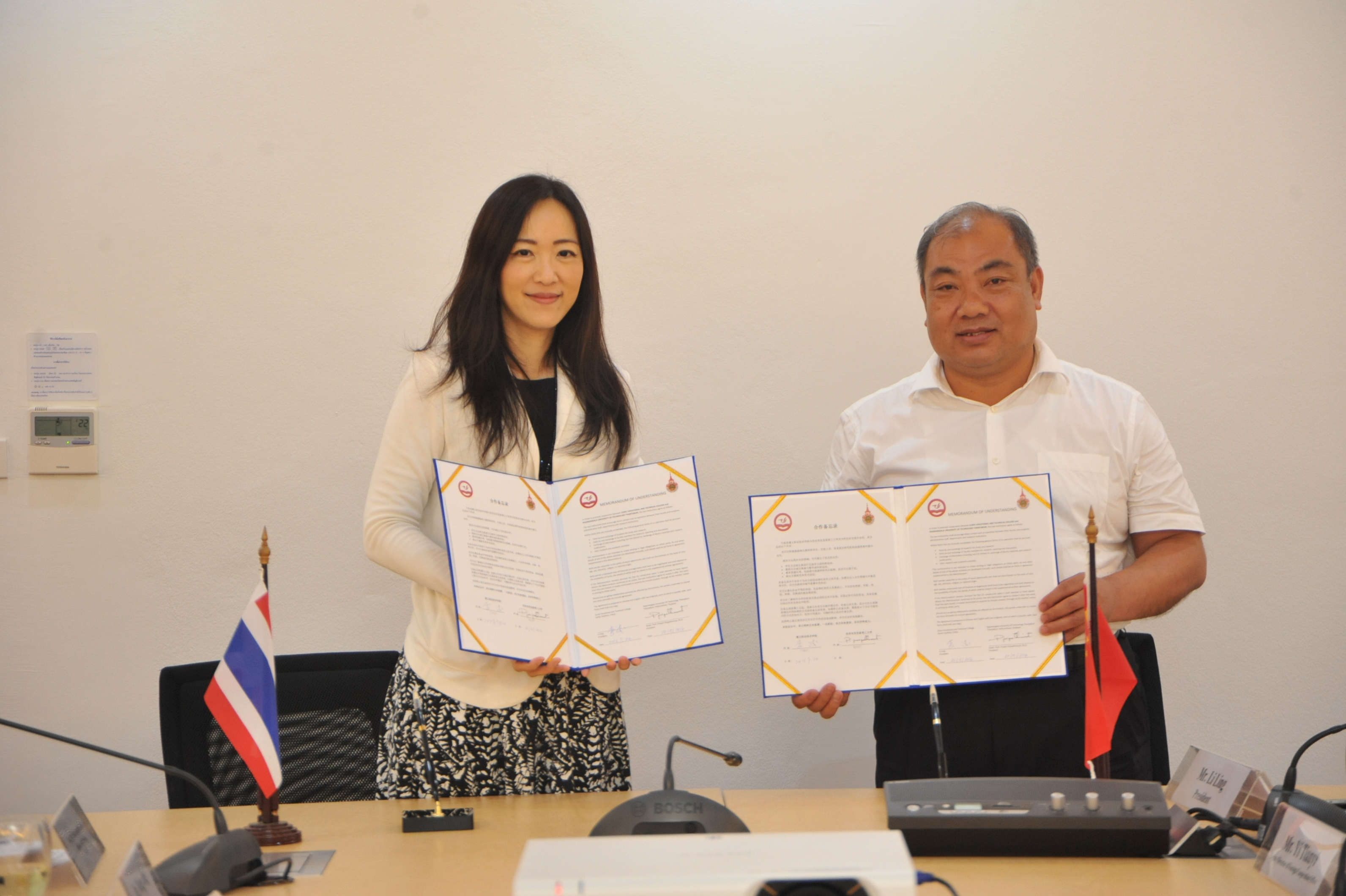 รศ.ดร. ณฐา คุปตัษเฐียร ผู้ช่วยอธิการบดี และผู้อำนวยการกองยุทธศาสตร์ต่างประเทศ มหาวิทยาลัยเทคโนโลยีราชมงคลธัญบุรี เข้าร่วมพิธีลงนามความร่วมมือทางวิชาการระหว่าง มทร.ธัญบุรี กับ Mr.Li Ling, President Zunyi Vocational and Technical College สาธารณรัฐประชาชนจีน เพื่อแลกเปลี่ยนนักศึกษา การฝึกอบรมอาจารย์ และหาแนวทางความร่วมมือในการจัดการเรียนการสอนวิชาการท่องเที่ยวและการโรงแรม ณ ห้องประชุมธัญกาฬ ชั้น 5 อาคารเฉลิมพระเกียรติ 48 พระชันษา สมเด็จพระเทพรัตนราชสุดา ฯ สยามบรมราชกุมารี เมื่อวันอังคารที่ 20 กันยายน 2559 เวลา 14.30 น.