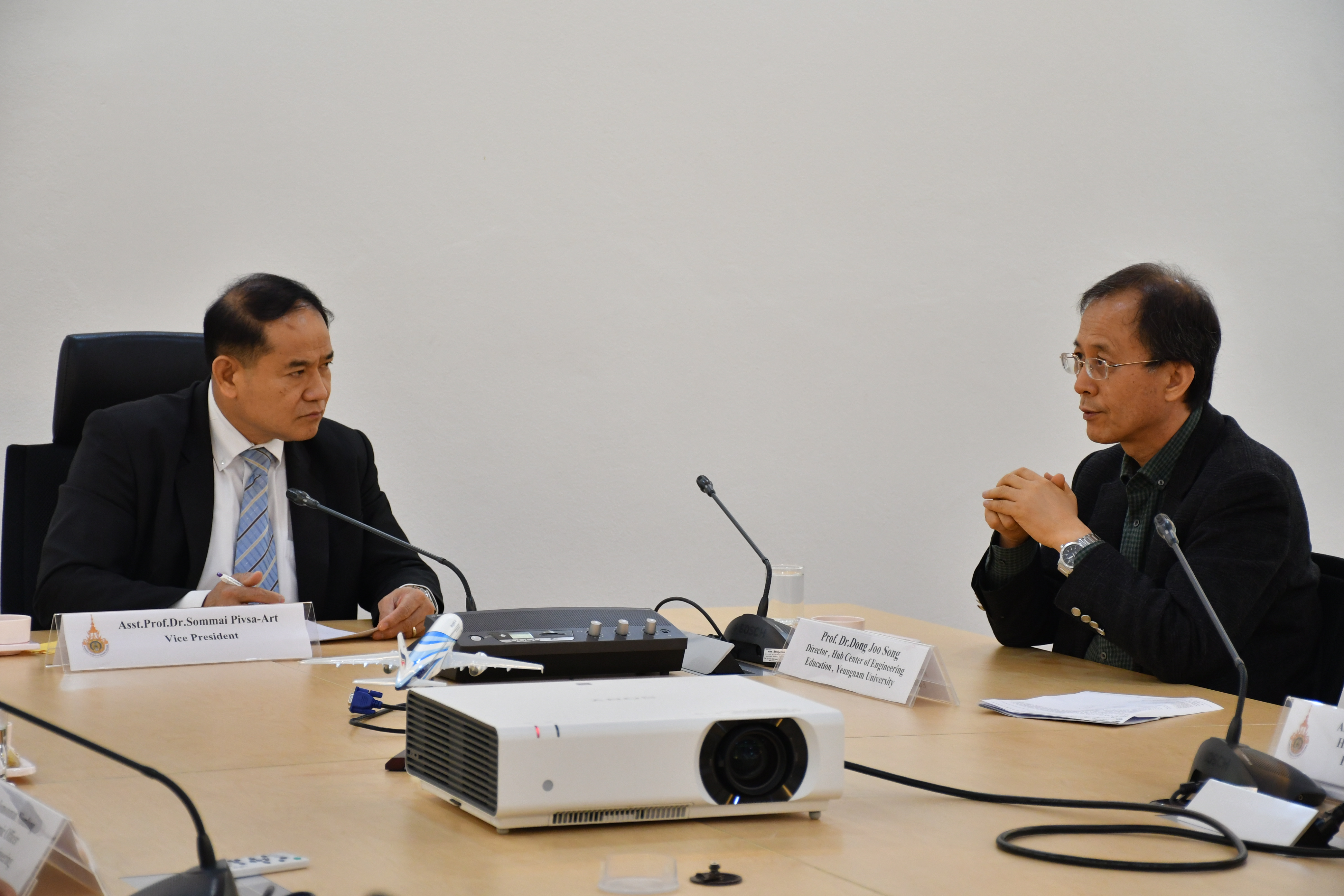 ผศ.ดร.สมหมาย ผิวสอาด รองอธิการบดี และ รศ.ดร.ณฐา คุปตัษเฐียร ผู้ช่วยอธิการบดี มหาวิทยาลัยเทคโนโลยีราชมงคลธัญบุรี ให้การต้อนรับ Prof. Dr. Song Dong Joo จาก Yeungnam University ประเทศเกาหลีใต้ เดินทางมาเข้าพบผู้บริหารของมหาวิทยาลัยเทคโนโลยีราชมงคลธัญบุรี เพื่อหารือด้านความร่วมมือทางวิชาการด้านการจัด International Cooperation in Capstone Design or Engineering Design or Service Learning with Appropriate Technology เมื่อวันจันทร์ที่ 5 กุมภาพันธ์ 2561 ณ ห้องประชุมธัญกาฬ ชั้น 5 อาคารเฉลิมพระเกียรติ 48 พระชันษา สมเด็จพระเทพรัตนราชสุดาฯ สยามบรมราชกุมารี มหาวิทยาลัยเทคโนโลยีราชมงคลธัญบุรี
